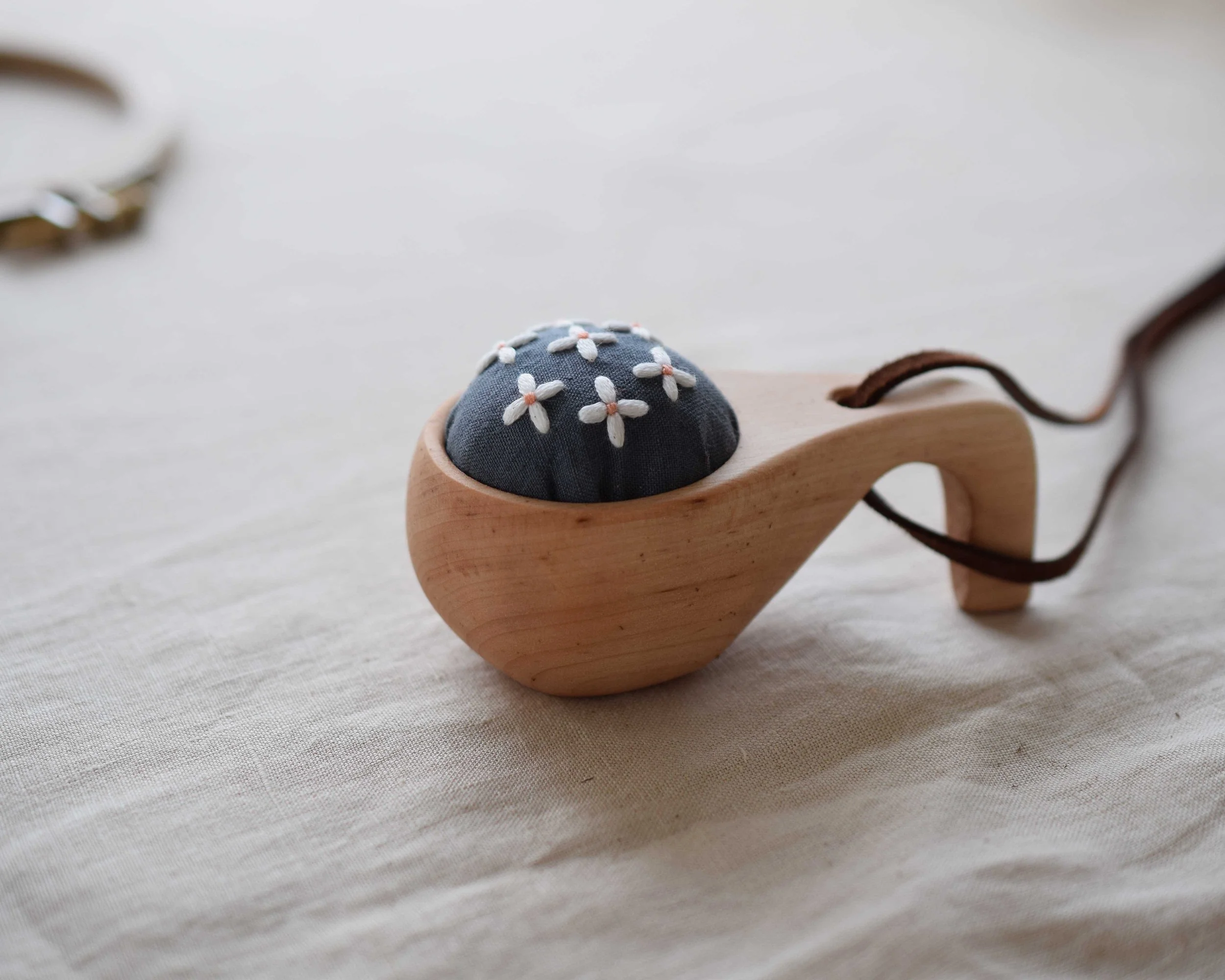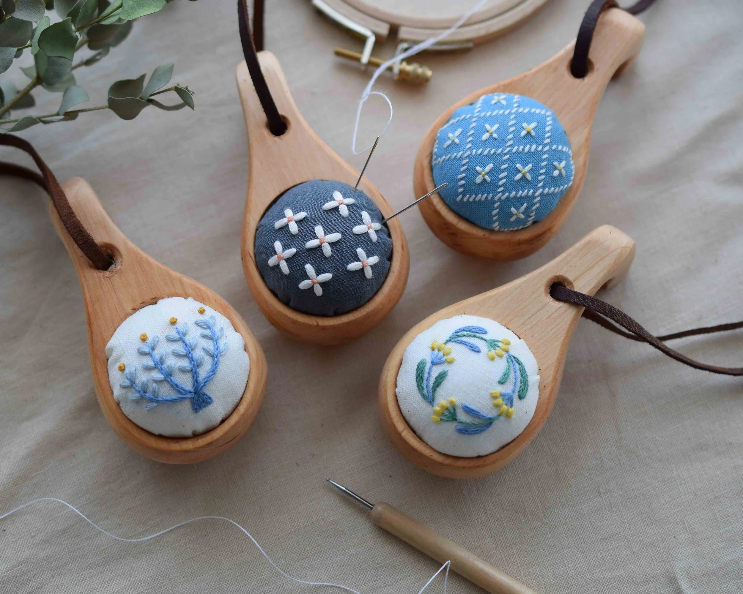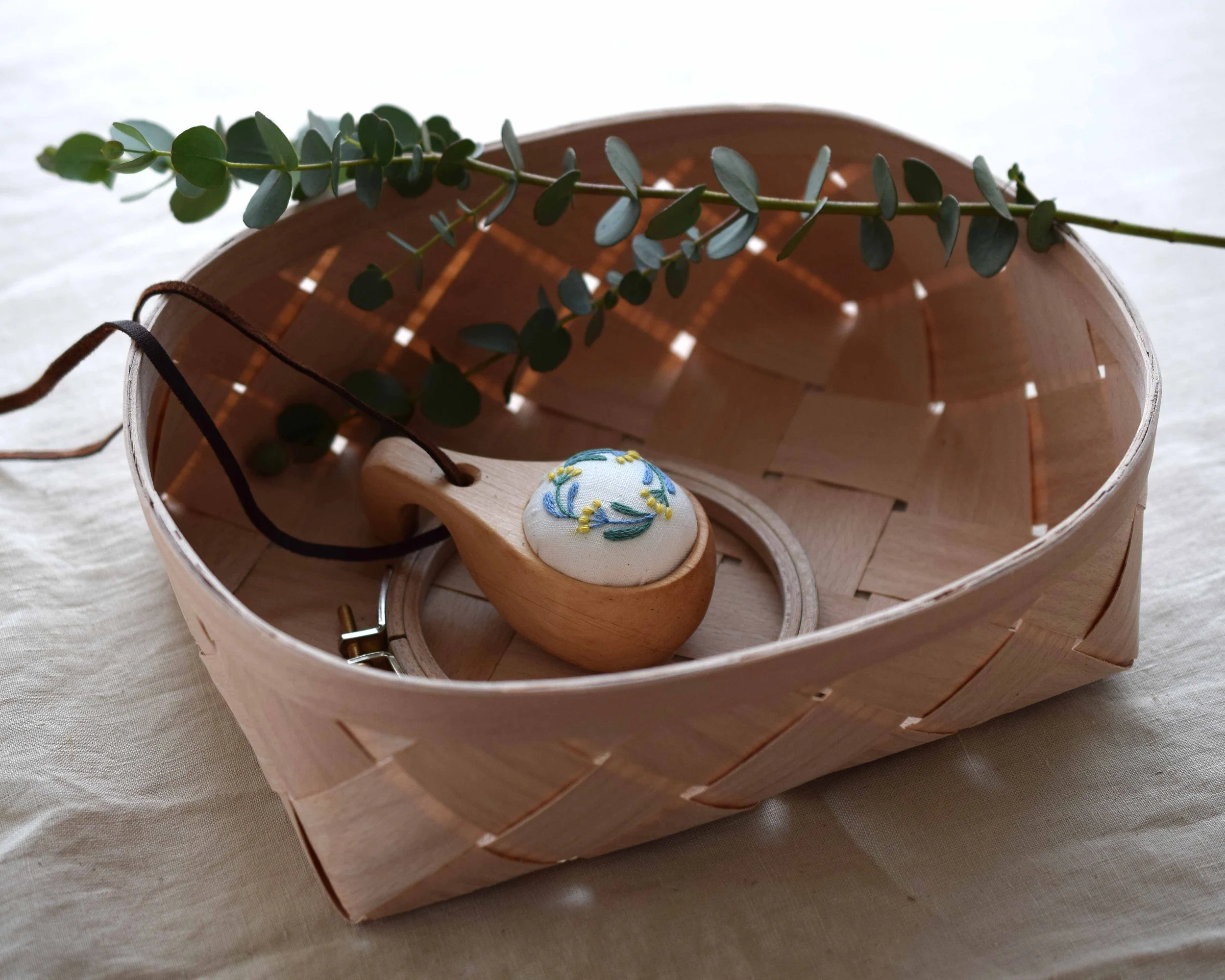 北欧の伝統手工芸 ククサで刺繍のピンクッションをつくるレッスンです。