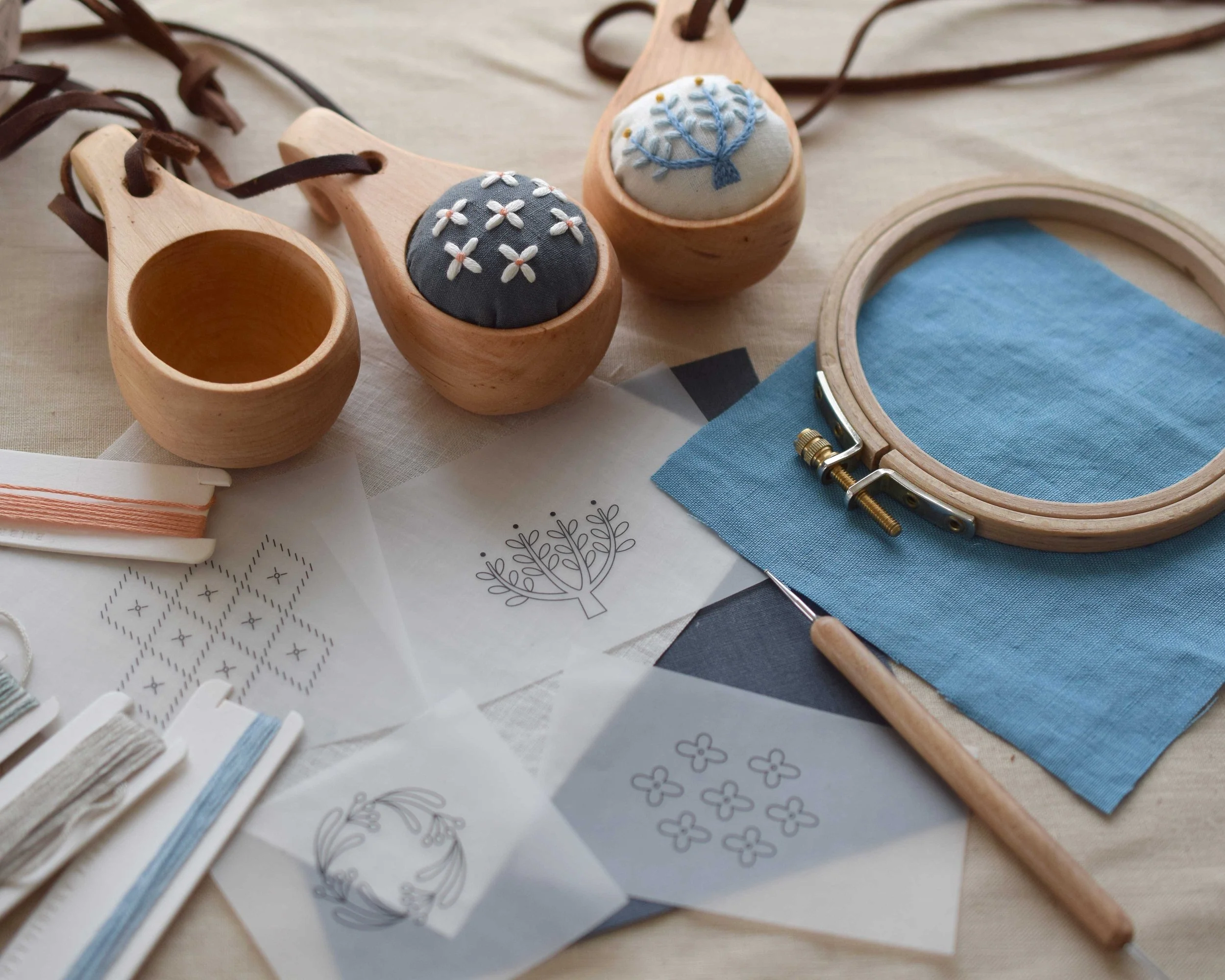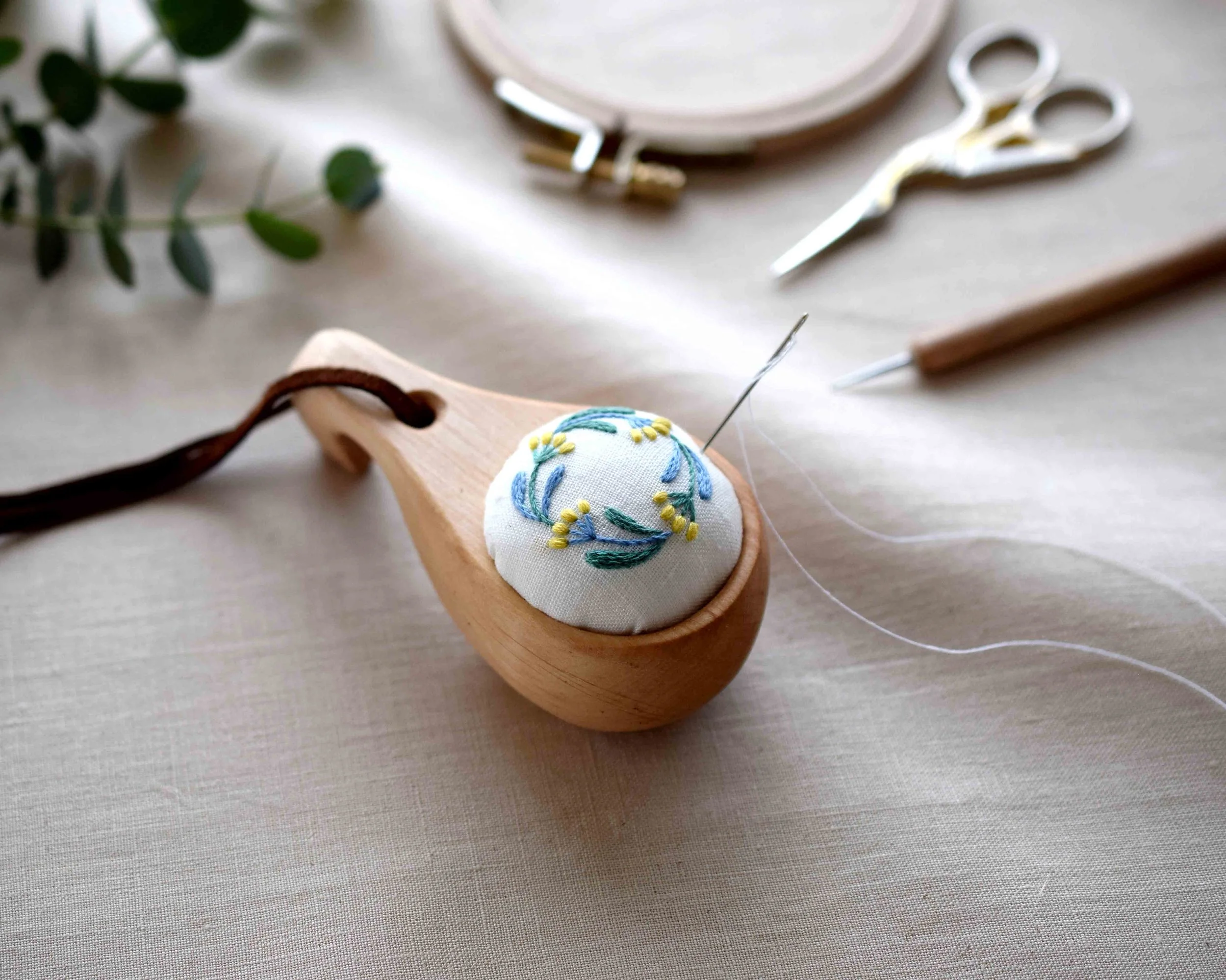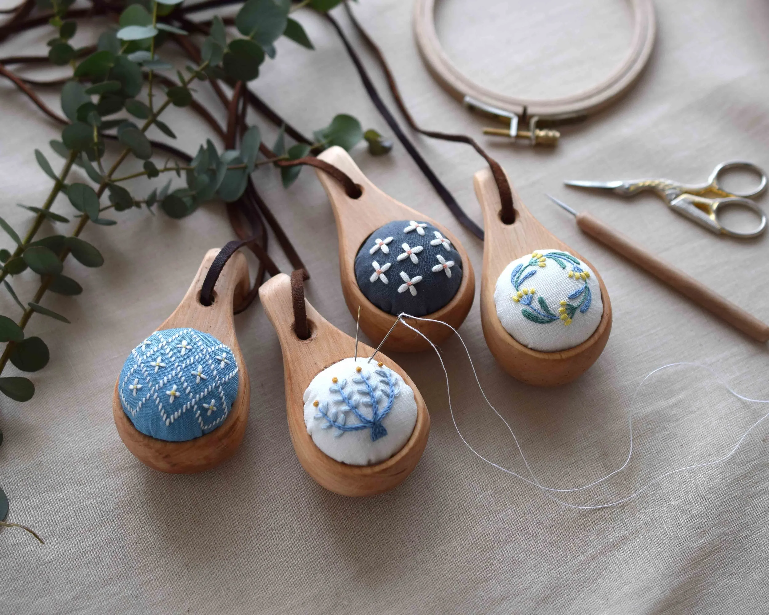 北欧の伝統手工芸 ククサで刺繍のピンクッションをつくるレッスンです。