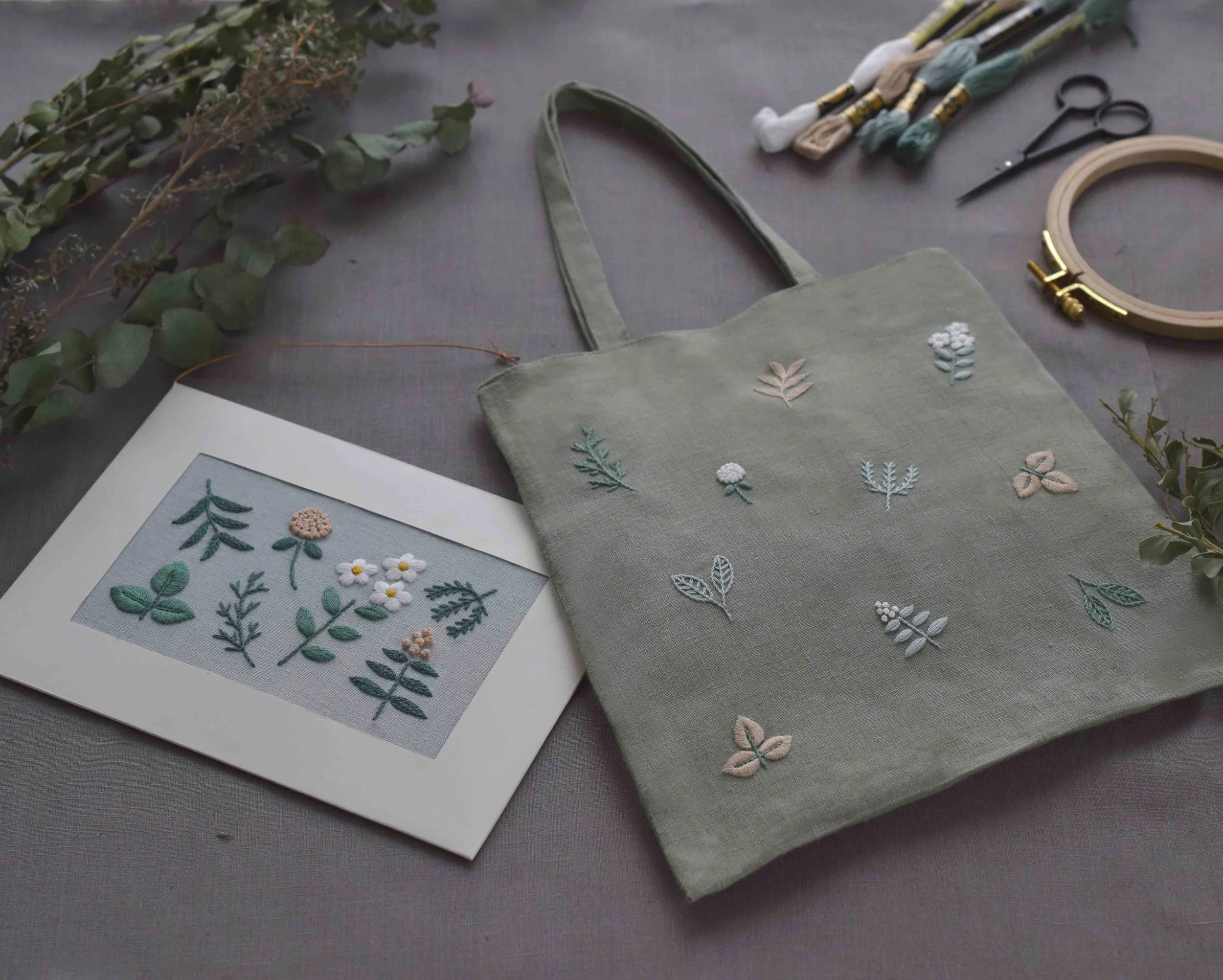 /// 草花の刺繍 -壁飾りとトートバック- ///