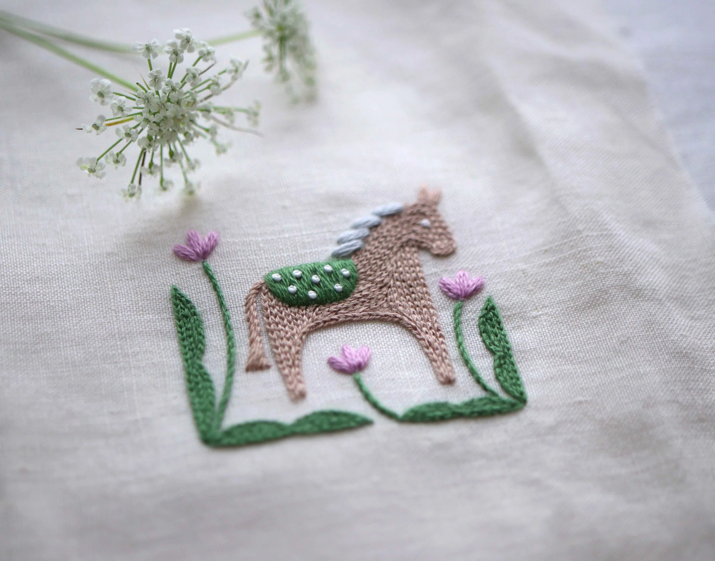 それらを組み合わせながら、北欧の暮らしの一場面を描くように、ゆっくりと刺繍を進めていきます。