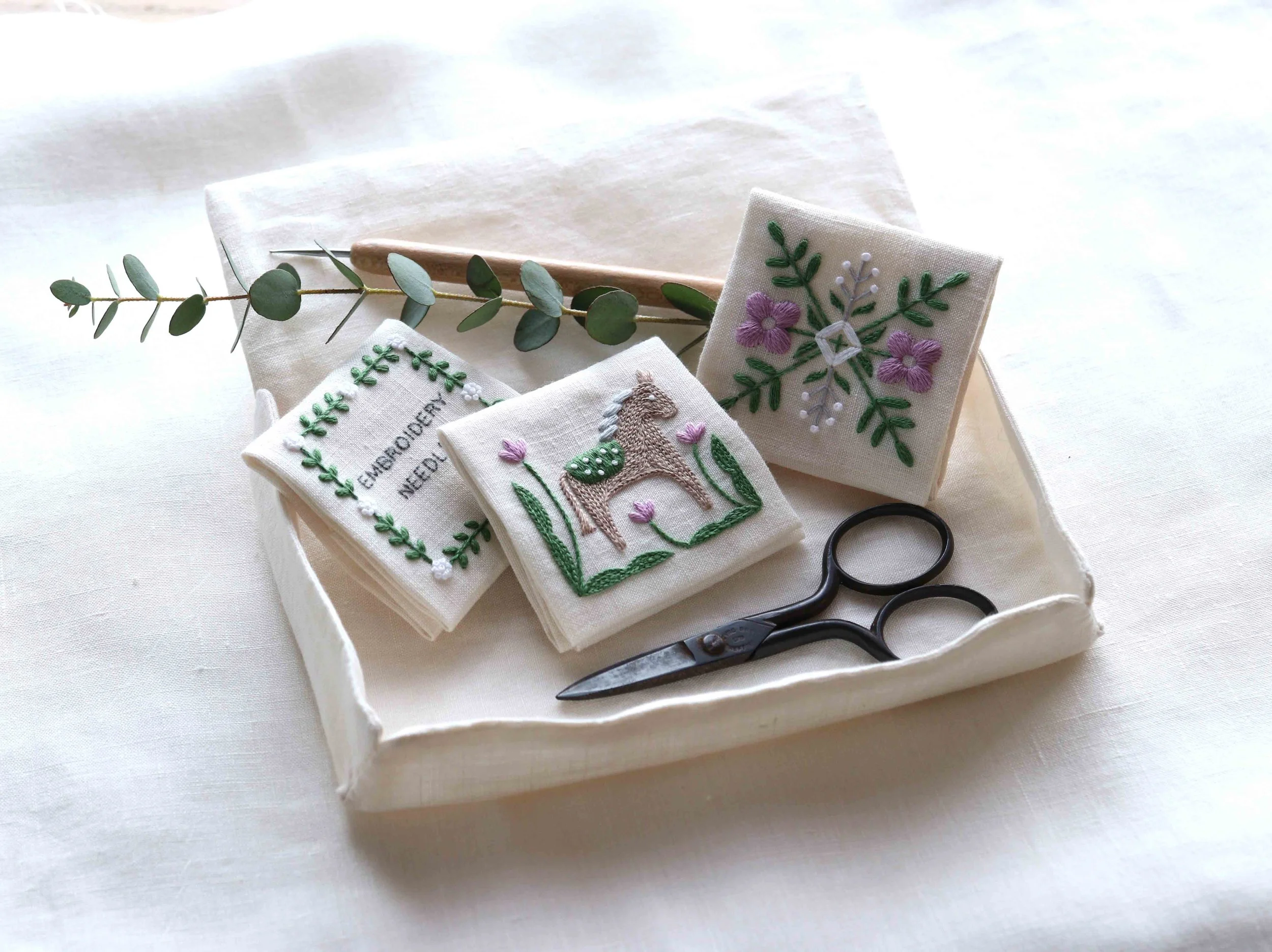 私にとって刺繍は、大切な誰かの幸せをそっと祈るような気持ちで、一針一針すすめる豊かな時間です。教室でも、刺繍で暮らしを彩る楽しさを分かち合えたら嬉しいです。