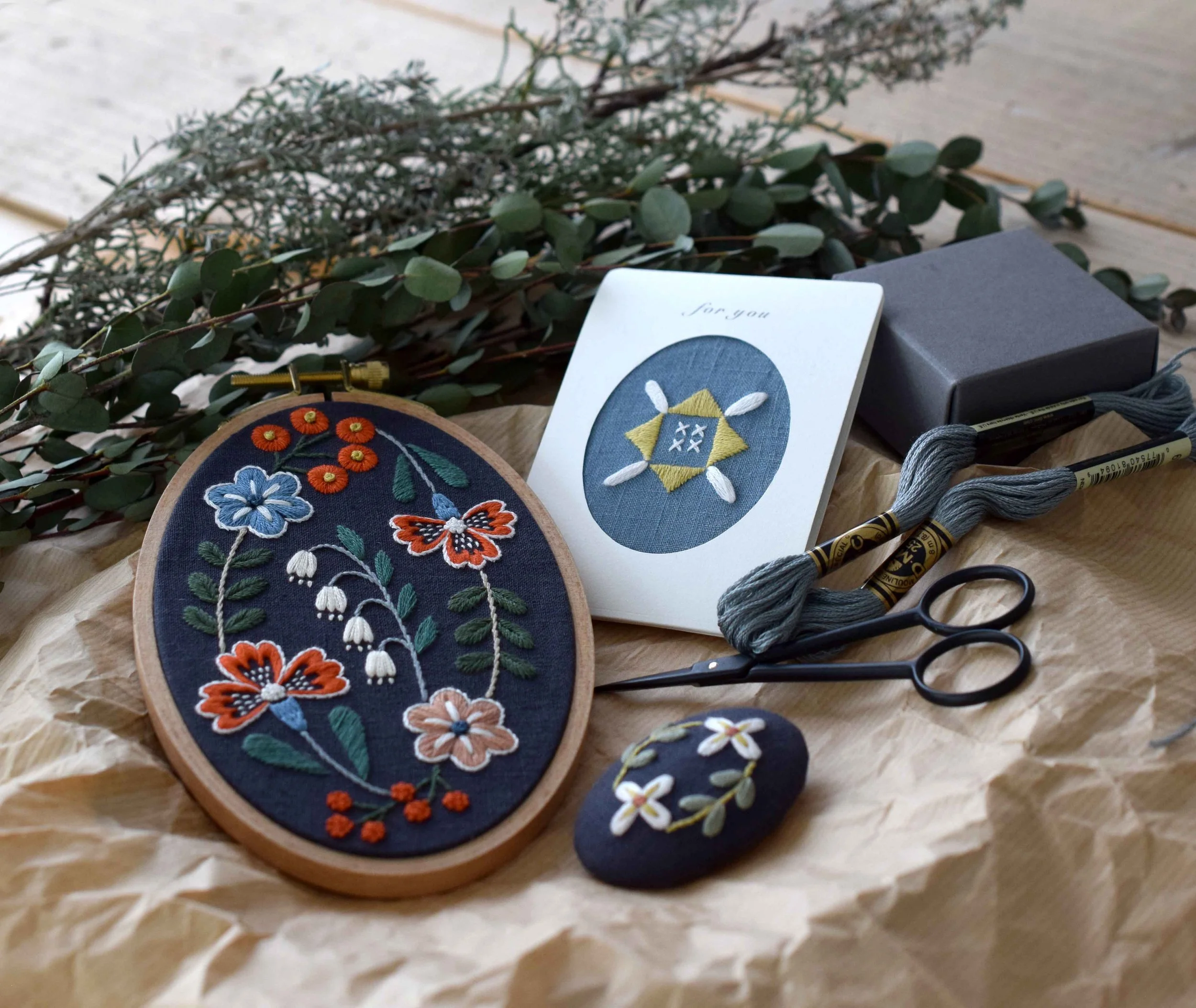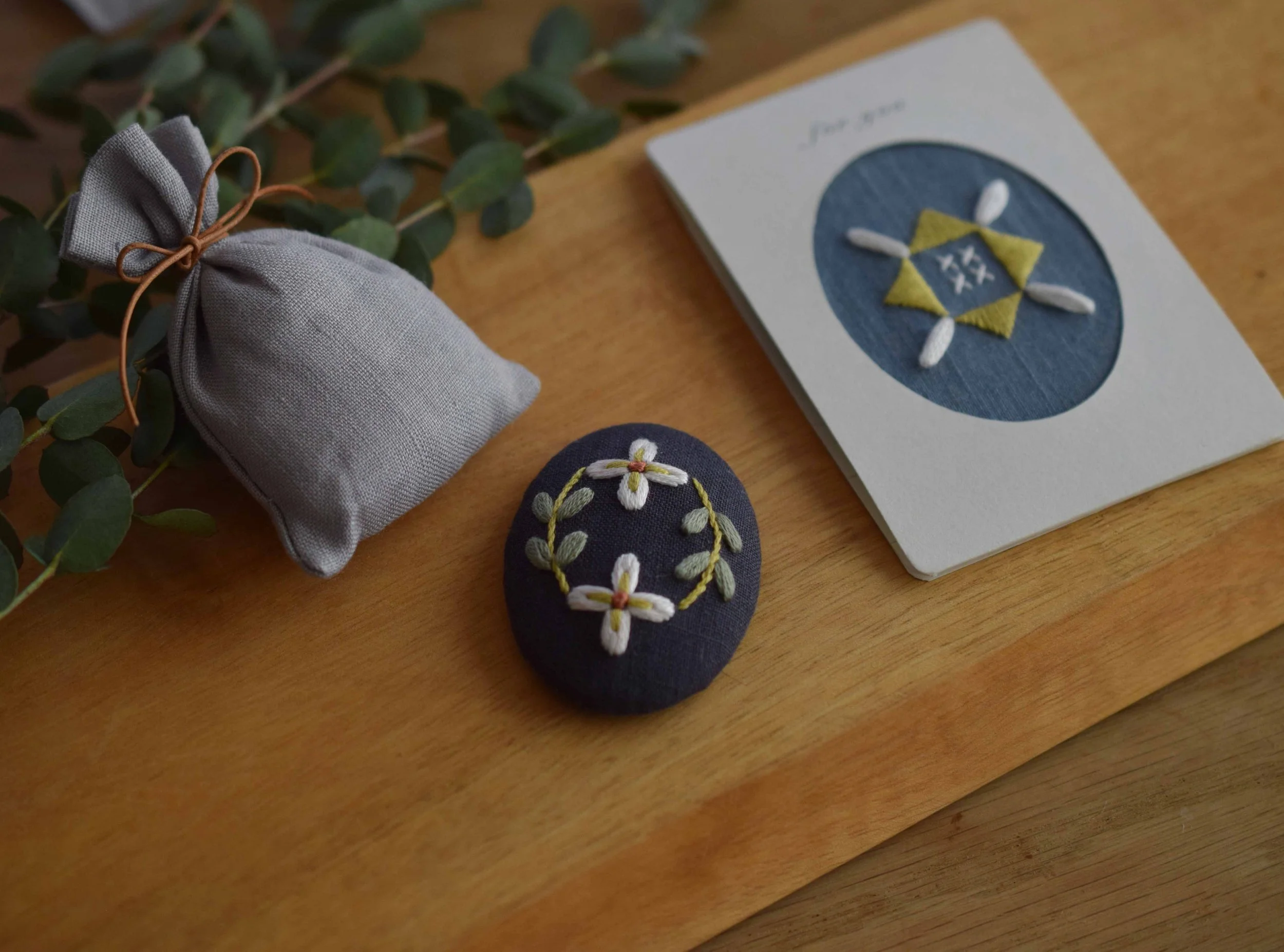 小さいサイズの図案はブローチ、サシェ、カードなど仕立てが選べるので、組み合わせれば贈り物のアイデアが無限大に広がります。